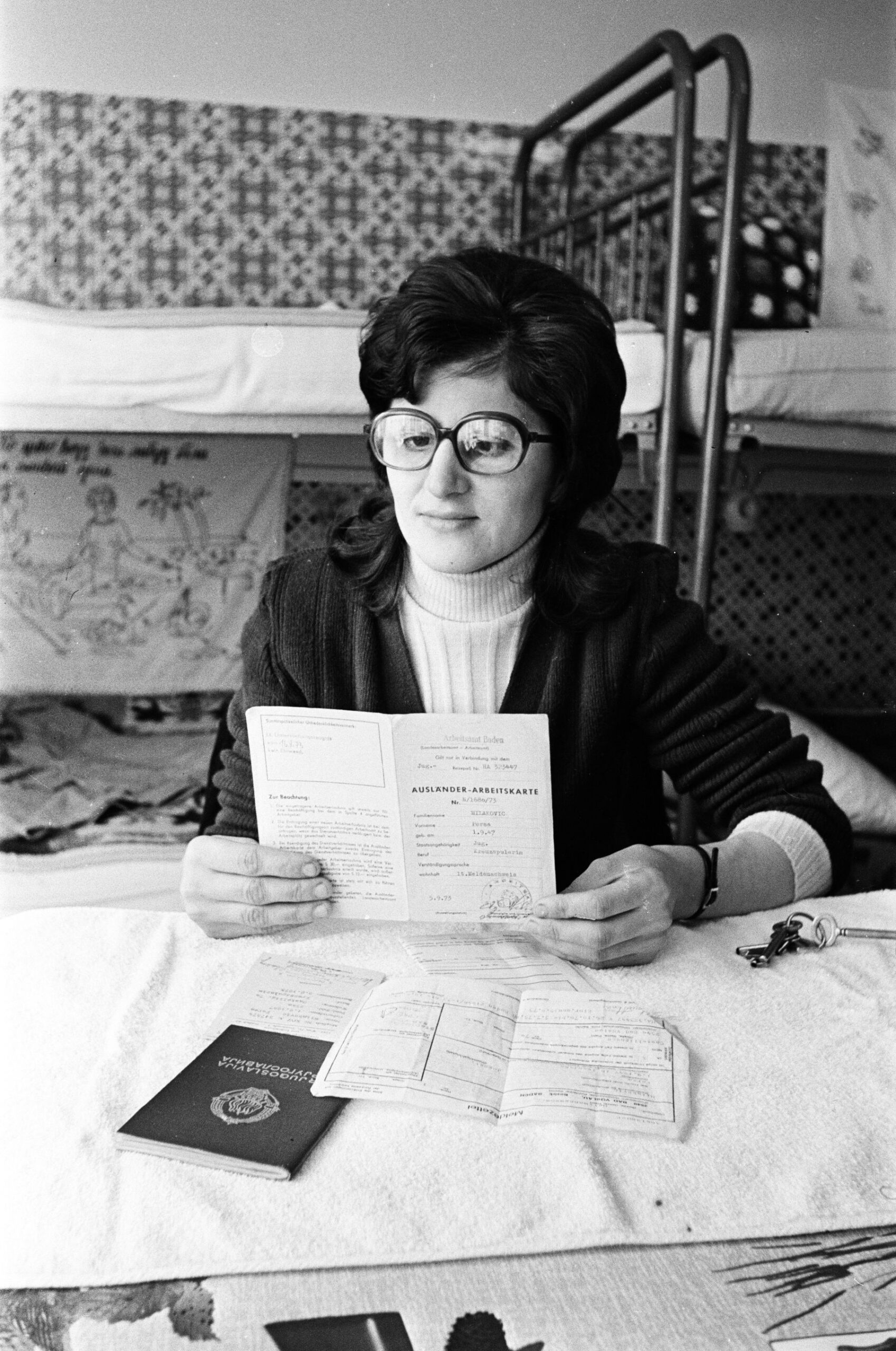 Abb. 3: Jovan Ritopečki, Persa M. mit ihrer Ausländer-Arbeitskarte, um