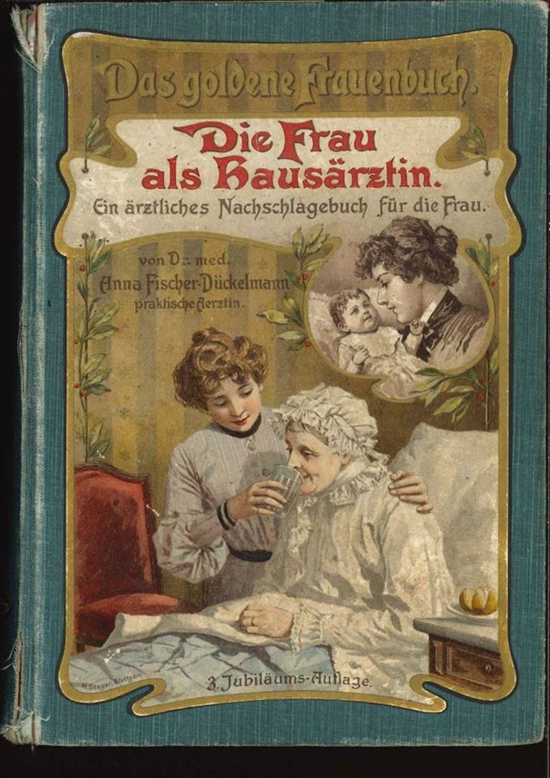 Cover eines Buchs von 1905: Eine junge Frau kümmert sich um eine alte Frau; oben Schrift